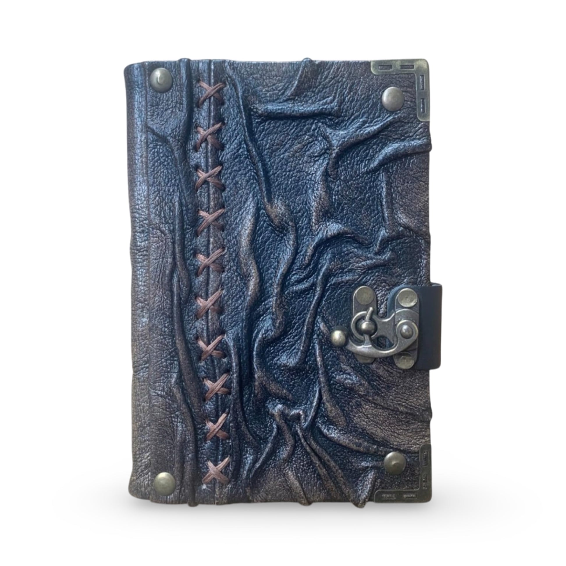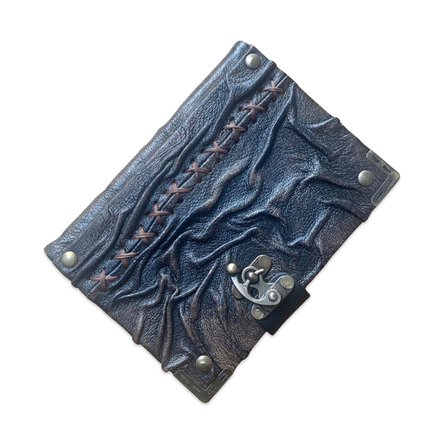 The richly distressed finish evokes the spirit of a bygone era, as if plucked from the satchel of a medieval scribe or a wandering storyteller. Fastened with a vintage-style bronze clasp, this journal doesn’t just hold your words—it holds history.