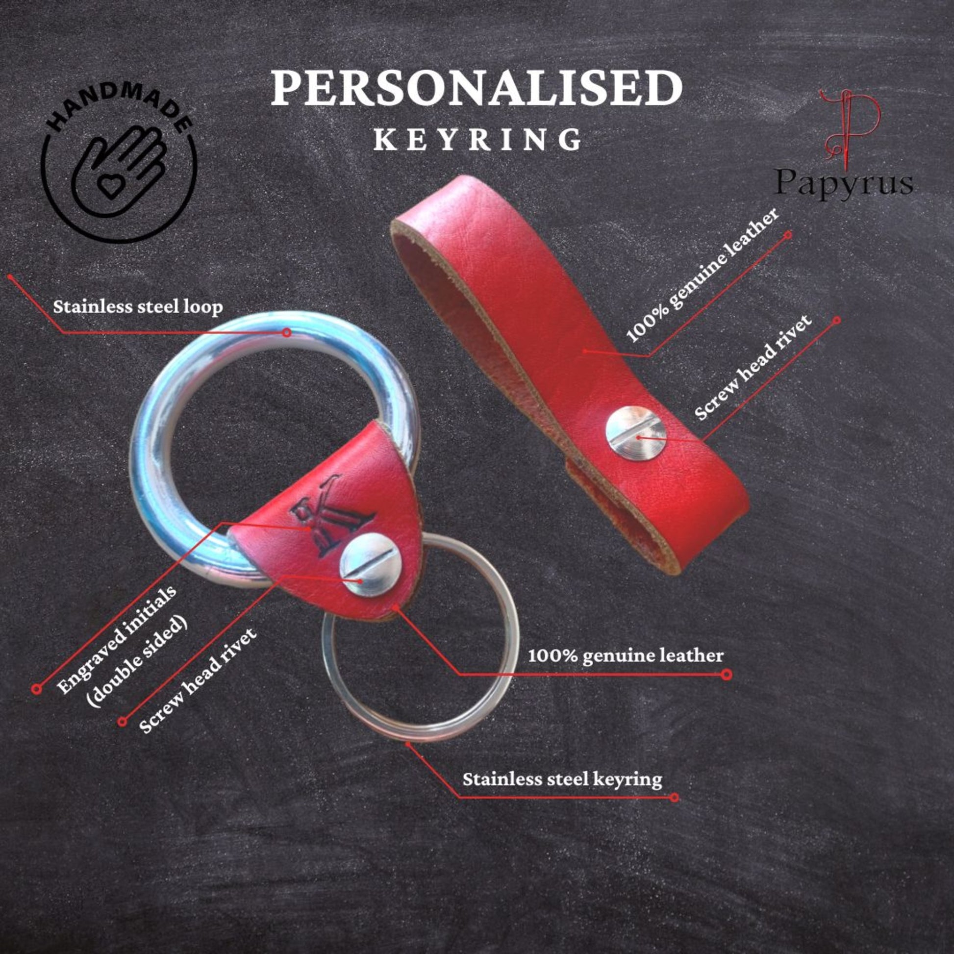 Elevate your daily essentials with this handcrafted personalised leather and stainless steel keyring. Combining premium materials and exceptional craftsmanship, this keyring is as stylish as it is functional, making it a timeless accessory or thoughtful gift.