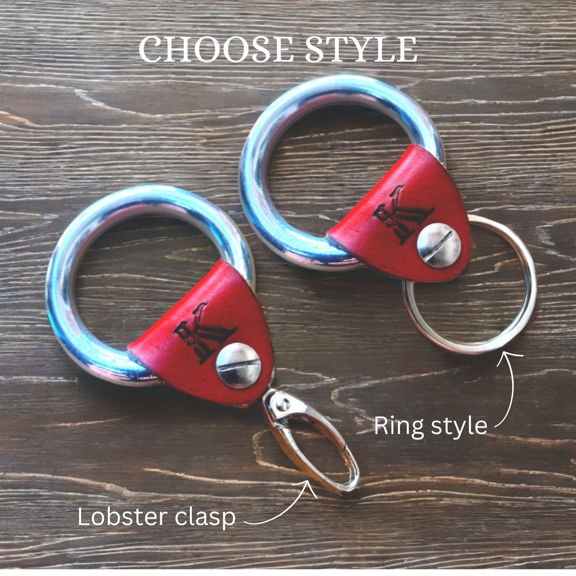 Crafted from a solid, heavy-duty stainless steel loop paired with eco-friendly vegetable-tanned leather, this keyring is built to last. The leather piece can be personalised with a single alphabet letter on each side, adding a meaningful touch. With two style options—classic ring or lobster clasp—you can choose the design that best suits your needs.